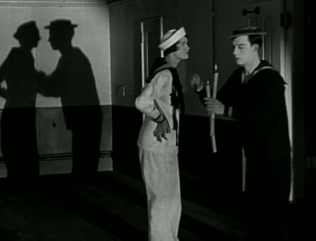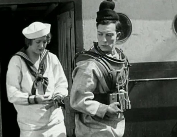 Enseguida comprobamos el maravilloso ingenio de Buster Keaton y su equipo de guionistas para crear gags a partir de un espacio concreto. En sus películas, Buster es siempre el personaje que no consigue adaptarse al entorno pese a sus frustrados intentos, la mayoría de gags surgen a partir de esa confrontación con el espacio o una determinada situación, algo que él mismo dio a entender cuando reconoció que solían trabajar sobre una idea esquemática para luego desarrollar los gags en el plató. Teniendo eso en cuenta, la disponibilidad de un barco solo para él en su época de mayor creatividad era un caramelo demasiado sabroso como para dejarlo escapar. El film por tanto nace a partir de un espacio (el barco) sobre el que se construyen los gags.