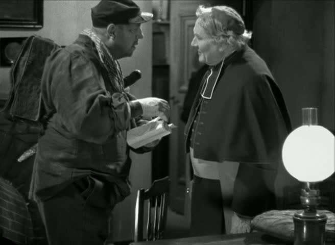 En cuanto al reparto, Jean Valjean es encarnado por el prestigioso actor de formación teatral Harry Baur. Para mi gusto su interpretación va de menos a más a lo largo del film llegando a su cénit en el tercer acto con la angustiosa escena en que se transporta a un inconsciente Marius por las alcantarillas. El otro gran papel de la película, el inspector Javert, es interpretado por una cara más conocida, Charles Vanel, un actor de larga carrera en el cine que borda su actuación.
