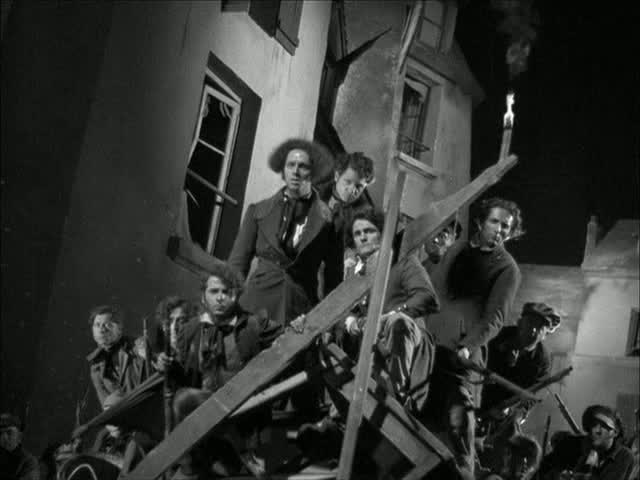 Pero si nos centramos en sus virtudes cinematográficas, Bernard compensa estas carencias con su excelente saber hacer como cineasta. Su trabajo de dirección es asombroso y dan ganas de profundizar aún más en su filmografía. La segunda parte del film es quizá la más llamativa por su puesta en escena más oscura reflejando los bajos fondos de París, pero donde realmente se luce es en la tercera, en la cual se narran los disturbios que tienen lugar en las calles de la capital. Así como algunos elementos potencialmente cinematográficos se suprimieron, Bernard sí que concede una gran importancia a esta parte del libro, y no es de extrañar, puesto que es donde brilla más su trabajo tras las cámaras filmando los combates. Quizá es un segmento demasiado alargado que se separa demasiado de la historia principal – en la novela también lo era aunque, a diferencia del libro, el film apenas se ha apartado de los protagonistas hasta entonces – pero en mi opinión vale la pena pagar ese precio por el espectacular resultado final.