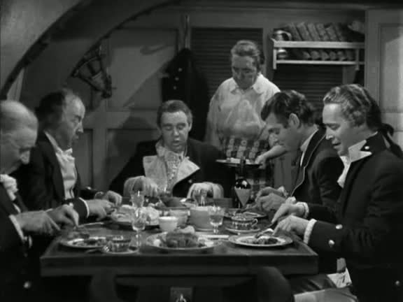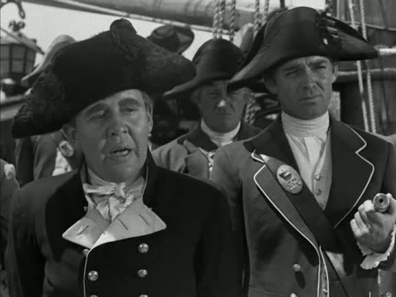 Por supuesto la clave del film es el impagable duelo interpretativo entre Charles Laughton y Clark Gable, que no deja espacio para un Franchot Tone que no está a la altura de sus compañeros. Las interpretaciones de ambos son uno de los grandes alicientes para el espectador de entonces y hoy día. De hecho ambos actores no tuvieron muy buena relación ya que se sentían inseguros el uno respecto al otro: Gable, obligado a despojarse de su mítico bigote (estaba forzado a afeitarse porque los almirantes navales no podían llevar bigote en aquella época) se sentía en inferioridad al lado de un actor tan colosal como Laughton, pero al mismo tiempo el propio Laughton estaba acomplejado al lado del atractivo galán. De ambos el ganador creo que es el actor británico, que en su papel de Capitán Bligh hace un trabajo extraordinario. Fíjense por ejemplo en detalles como un instante en que ve de reojo a uno de los marineros haciendo el gesto de coger una espada para atacarle. Lejos de amedrentarse, Bligh se acerca desafiante a él y se pasea a su lado, sabiendo que no tendrá el coraje de atacarle aún dándole la espalda.