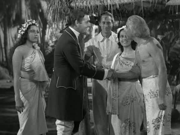 Teniendo en cuenta que está basado en una obra ajena, el guión tampoco tiene espacio para hacer muchas concesiones, pero es de justicia reconocer que no se deja llevar del todo por el desenlace fácil. Efectivamente, Byam al final es liberado – no sin antes haberse «vengado» por anticipado del tribunal con un largo discurso destinado a matarlos de aburrimiento – pero en la vida real parece ser que también fue perdonado. A cambio sus compañeros son todos ejecutados, incluyendo ese entrañable hombre que arriesgó su vida volviendo a la civilización solo para ver a su mujer e hijo. Por otro lado, Bligh nunca recibe ningún castigo por su conducta, y aunque resulta poco creíble imaginar a Christian y los amotinados viviendo en armonía en una isla de Tahití tal y como se nos insinúa, es significativo que, sabiendo que no se hará justicia con ellos, deban resignarse a aislarse del mundo para poder seguir viviendo.