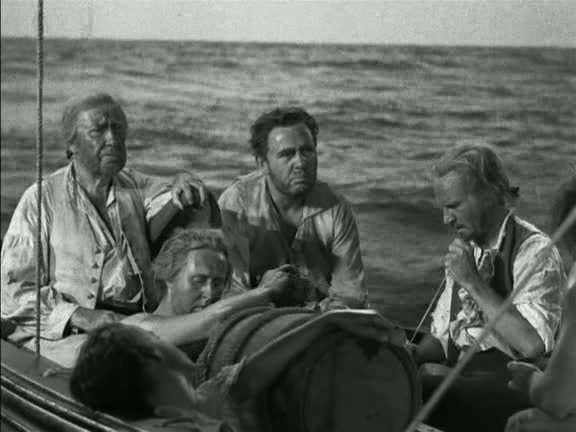 Se le podría achacar quizá al enfrentamiento una falta de matices que no convierta tan claramente a Bligh en el malo y a Christian en el bueno, si bien algunos de esos matices se van intuyendo pero más en pequeños destellos. Por ejemplo, la forma como Christian aplaca una primera insinuación de motín con dureza y no tolera insultos al capitán pese a que opine como los tripulantes (su personaje debe moverse en esa curiosa ambivalencia buscando un término medio que al final acaba siendo imposible). O la forma como buena parte de la tripulación decide ser fiel al capitán Bligh durante el motín, incluso los personajes que vemos como positivos (Byam sin ir más lejos), evitando caer en el recurso fácil de «todos unidos contra un enemigo común». Y, mi detalle favorito, la escena en que Bligh y parte de los tripulantes van a la deriva en un barco salvavidas, en que podemos ver cómo éste realmente es un buen navegante y cómo en esas circunstancias se comporta con justicia con los demás, repartiendo equitativamente la comida entre todos.