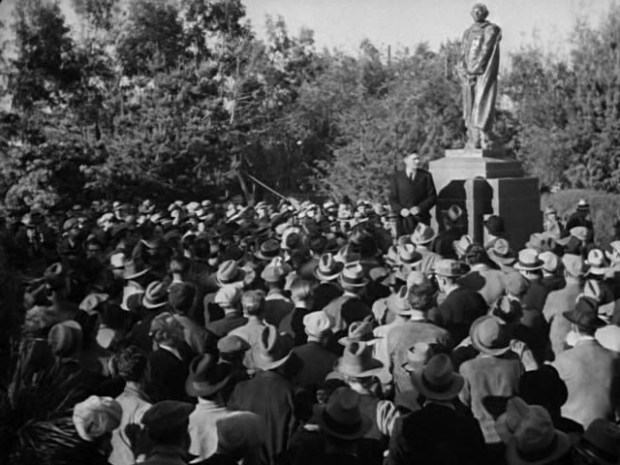 El Hollywood pre-código Hays es una de las épocas más interesantes del cine norteamericano. Películas antiguas que tratan con total atrevimiento temas que en solo unos años serían tabú. Films que muestran abiertamente situaciones que luego el código Hays se encargaría de reconducir hasta los caminos bienpensantes de siempre. Unos pocos años de cierta imprevisibilidad en que uno no podía intuir del todo hacia dónde se dirigirían los guiones. El film que nos ocupa hoy es paradigmático en ese sentido: producida por el magnate de la prensa William Randolph Hearst como un tributo al presidente Roosevelt y un ataque a los republicanos, la película trataba los problemas sociales del país en la peor época de la Gran Depresión de una forma tan extravagante que de un homenaje al mandatario demócrata acabó convirtiéndose casi en una apología a los totalitarismos.