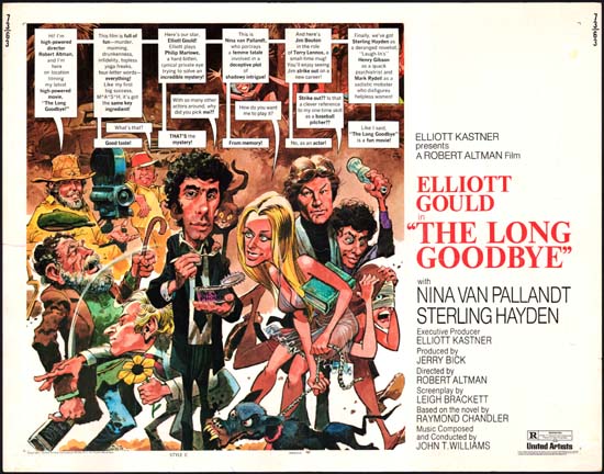 De entrada a mí no puede despertarme más que una extraña fascinación un tipo que fuera capaz de hacer películas corales de la talla de Nashville (1975) y Vidas Cruzadas (1993), combinadas con una adaptación en imagen real de Popeye (1980) o un film consistente en Richard Nixon hablando solo durante hora y media – Secret Honor (1984). Cualquier estudio de la carrera de Altman como autor implica no solo abordar grandes películas sino enfrentarse también a filmes absolutamente fallidos y comedietas de muy bajo nivel. Y eso es algo que precisamente por lo difícil que resulta de abordar me parece tan interesante y – por qué no – divertido. Su adaptación de El Largo Adiós (1973) creo que refleja bastante bien la idiosincracia de Altman: no es una película redonda pero sí muy interesante, y en ocasiones eso resulta preferible a un filme bien acabado pero sin nada especial que ofrecer.