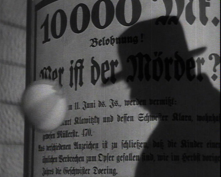 El inicio de la película es ya de entrada uno de los más memorables de la historia del cine: unos niños juegan en el patio de un bloque de pisos a un juego sobre un monstruo que se va a llevar a uno de ellos. Una madre les pide desde una ventana que dejen ese juego tan macabro y vuelve al interior a preparar la comida para su hija pequeña Elsie, que llegará en breve. Pasamos al plano de una niña que pasea por la calle con una pelota y que se queda parada ante un cartel avisando sobre un asesino de niños. Una sombra se posa sobre el cartel y un desconocido le dirige una frase amistosa a la niña. Vemos en paralelo a la madre esperando mientras la niña y el desconocido van juntos y este último le compra un globo. La madre se da cuenta de que hace tiempo que su hija debería haber vuelto y empieza a llamarla a gritos a través de la escalera. En paralelo vemos el globo enredado en unos cables eléctricos y la pelota rodando solitariamente.
