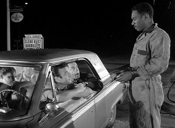 Más adelante Duff acude a ayudar a un hombre que ha tenido un aparatoso accidente de coche. El hombre está sin duda nervioso y se muestra parlanchín, intentando confraternizar con Duff, pero éste tiene un talante serio y callado. Finalmente el hombrecillo le suelta un comentario discriminatorio y cuando Duff se burla de él acabará viéndose en una situación que le hará perder ese trabajo. Ésta es quizá una de las muestras más interesantes de racismo que muestra el filme, porque resulta obvio que ese hombre no parece mala persona (y de hecho cuando él y unos jóvenes matones acuden a la gasolinera a humillar a Duff se arrepentirá de haber provocado esa situación), pero cuando se encuentra en una situación tensa que le hace sentir ridículo y humillado, no puede evitar servirse de la superioridad que le otorga ser blanco para desfogarse con Duff. En realidad el problema no son solo las personas abiertamente racistas, sino aquellas que se creen tolerantes pero que tienen tan asimilada su posición de superioridad que no pueden evitar servirse de ella cuando las circunstancias les empujan a ello. Y de entre los personajes blancos que vemos en el filme, la mayoría parecen más cercanos a este grupo: no llegan a insultar nunca a Duff o a emplear malas palabras con él pero se nota en su tono que se saben en una posición de superioridad.