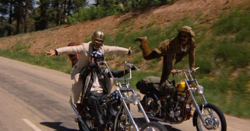 Un primer aspecto nada trivial era el título original, que podríamos traducir como «motero tranquilo» y que ya en si mismo subvierte el rol que tendrían los moteros protagonistas respecto a lo que era lo corriente en otras obras del género, donde se dedicaban a cometer todo tipo de tropelías y buscar pelea con otras bandas rivales. Nada de eso hay en Easy Rider, donde sus dos protagonistas son dos moteros que lo que hacen simplemente es recorrer el país para llegar a tiempo a New Orleans para la celebración del Mardi Gras. Lo interesante es que aquí ellos son las víctimas, al ser atacados por unos pueblerinos o acosados por la policía cuando no buscan problemas con nadie, y en este cambio de roles Fonda y Hopper están haciendo algo muy interesante que es cambiar la percepción tradicional de la figura del motero como un peligroso fuera de la ley. Aquí son más bien símbolos de la contracultura en permanente conflicto con el resto de la sociedad por no replegarse a sus normas.
