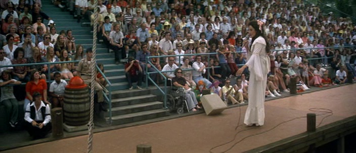 Pero no por ello es Nashville una película cínica, de hecho el desenlace me parece inesperadamente emotivo: después de que se detenga a la persona que ha provocado el tiroteo en mitad del concierto, la vieja estrella de country, herida en un brazo, antes de abandonar el escenario pide por el micrófono a la gente que siga cantando. Y es entonces cuando uno de los personajes más secundarios de la trama, esa mujer que se ha pasado toda la película huyendo de su marido para buscarse una carrera como cantante, de repente aparece de un lado del escenario, coge el micrófono y empieza a cantar. Sorprendentemente lo hace bastante bien para ser una amateur, y poco a poco su solitario canto se va imponiendo a todo el caos hasta que la banda y los coristas se la van uniendo.