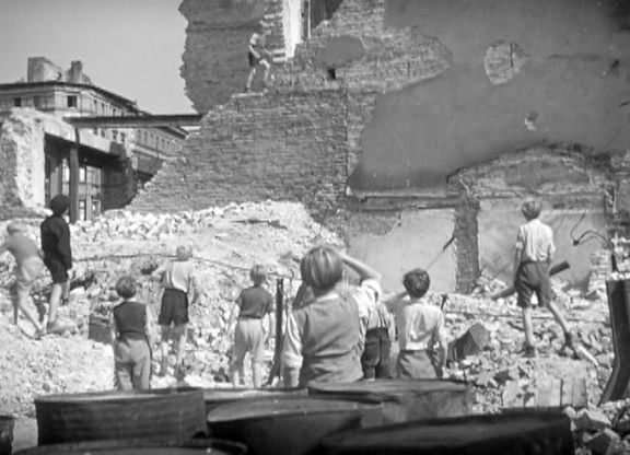 Solo en el desenlace Lamprecht nos ofrece un mensaje más claro y obvio (esas jóvenes generaciones construyendo literalmente el futuro del país), y si bien este tipo de cierre quizá ha envejecido peor que el del filme de Rossellini, vuelvo a repetir aquí lo mismo que dije del final de Los Niños de la Colmena (Hachi no su no Kodomotachi, 1948) de Hiroshi Shimizu, una obra con la que tiene muchísimo en común: hemos de tener en cuenta que en el contexto de esa época un final de ese estilo no era doblegarse al clásico happy ending, sino algo necesario para el público. Son filmes nacidos en un contexto de derrota, miseria y desesperación. Más allá de sus valores artísticos, eran obras que también querían transmitir esperanza a unos espectadores que por entonces estaban muy necesitados de ella.