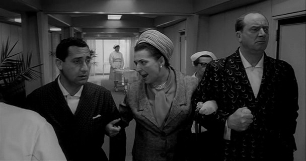 El momento más destacable no obstante es aquel en que Giovanni acude a la clínica a someterse a la operación, que en ciertos aspectos me ha recordado – salvando las distancias, claro – al magistral desenlace de El Verdugo (1963), pero que aquí evoca más la imagen de un niño reticente a acudir a una visita al dentista. De Sica nos contagia perfectamente del miedo de Giovanni, de esa sensación de pánico pero también de inevitabilidad, de tener que pasar por algo desagradable y traumático sin que haya forma de escapar de ello. La idea se enfatiza por el hecho de que el otro industrial, ese hombre tan poderoso y arrogante, también tiene miedo porque no soporta el dolor, y sobre todo, porque su mujer tiene en esta escena un papel semejante al de una madre que debe obligar a sus hijos a pasar por esa visita al médico.