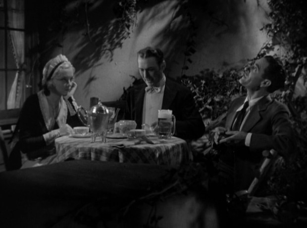 No obstante a mí me resulta más llamativo de la película el tono tan marcadamente pre-Code (recordemos que se llama así a las películas realizadas antes de que entrara en vigor el código de censura Hays). El filme está repleto de diálogos con segundas intenciones muy poco sutiles haciendo referencia a personajes que «están calientes» o a la noche de bodas que les espera a Albert y Anne, también contemplamos cómo la baronesa comete adulterio impunemente sin que tenga consecuencias para ella y se nos dan a entender claramente las veces que Karl se acuesta con alguna mujer. Pero lo curioso es que todo ello se maneja sin ningún asomo de erotismo picante. Sin ir más lejos, la seducción de Karl a la cocinera empieza cuando éste hace un comentario sobre sus piernas y luego la anima a que le limpie el trasero de su pantalón, lleno de harina. No estamos ante un seductor elegante sino ante un bribonzuelo zafio e impaciente. Nunca me canso de ver en estos filmes pre-Code a ese Hollywood clásico de apariencia glamourosa mostrando esa faceta más sucia, que luego repentinamente acabó teniendo que ocultar durante 20 años.