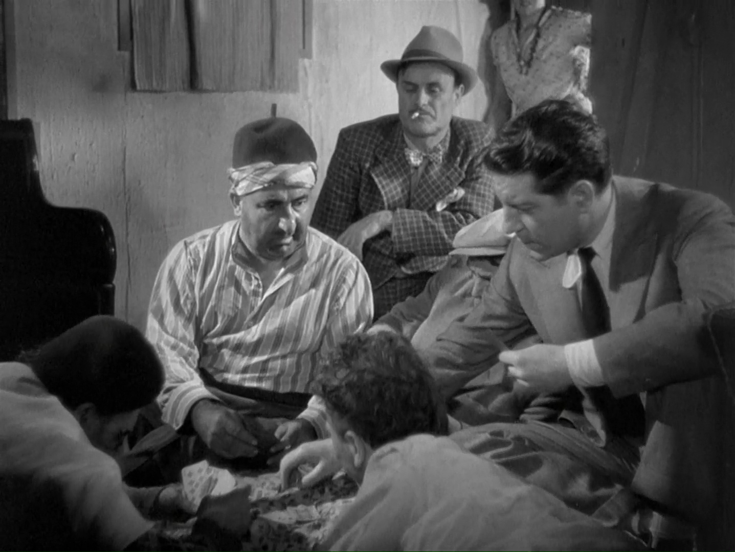 Vean la carismática banda de hombres duros que acompaña a Pépé le Moko. ¿No nos esperamos quizá ver a cada uno de ellos desempeñando un papel crucial en los planes criminales de ese gran gángster? ¡Cuántas grandes fechorías podría cometer ese grupo de tipos malhumorados y expertos en el crimen! Pero a efectos prácticos apenas les vemos en acción. Uno de ellos, encarnado por el gran Gaston Modot, se pasa literalmente toda la película jugando con un cacharro que tiene atada una pelotita… y eso es todo lo que hará en la hora y media de metraje. Literalmente. Solo hay una escena en que podemos intuir el potencial amenazante de esta banda, que es la magnífica secuencia en que acorralan a un hombre acusado de haberles tendido una trampa y lo retienen hasta confirmar sus sospechas.