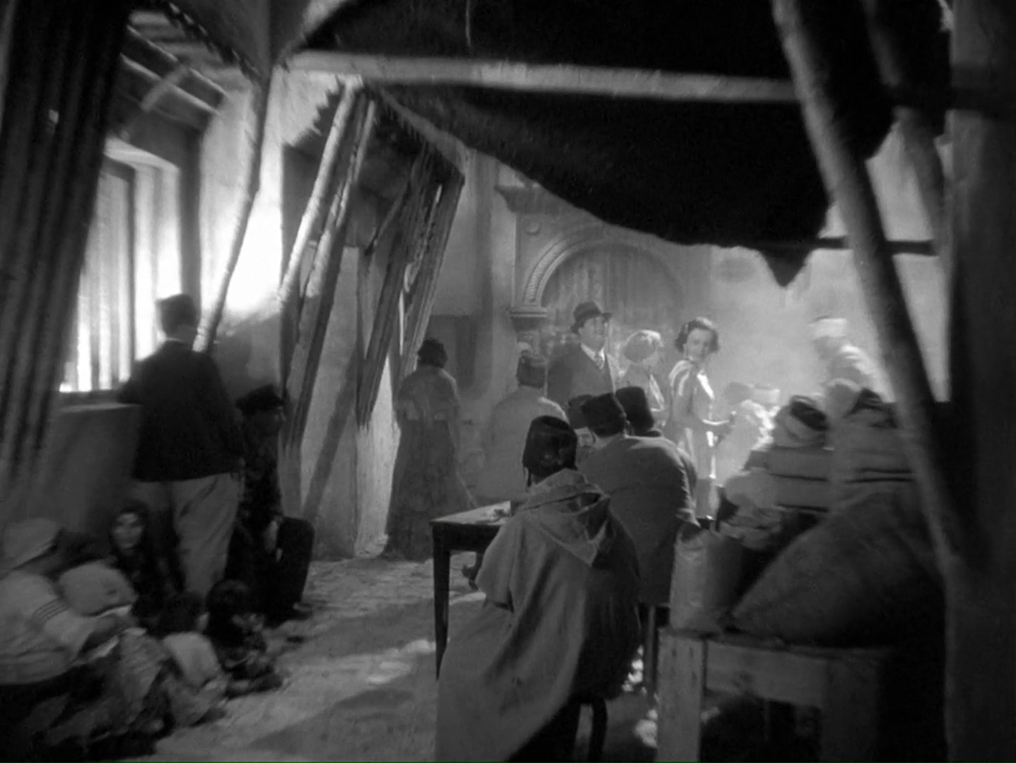 Éste es pues el gran defecto que le achaco al filme. No es justo iniciar la película con unos largos diálogos entre agentes de la ley que hablen sobre todo de lo que es capaz de hacer Pépé le Moko y su banda para que luego no se nos deje disfrutar de ello. Pero esto, que podría haber echado a perder la película, se compensa con creces con sus otros valores. Por ejemplo con un reparto de primer nivel más allá de Jean Gabin, plagado de secundarios carismáticos y en el que solo me falla precisamente el personaje de Gaby, que da una imagen demasiado sosa como para entender que Pépé se vuelva loco por ella. Y por descontado tenemos la sobresaliente dirección de Duvivier, que empieza por todo lo alto con unas imágenes documentales de la Casba magníficamente rodadas. Y no olvidemos el trabajo de ambientación del decorador Jacques Krauss al reconstruir el barrio de la Casba, un elemento fundamental de la trama. Como decía, es un ejemplo de cine comercial que además, si hacemos un repaso de filmes estrenados ese año, seguro que palidece al lado de muchas de las grandes obras que dio el cine en 1937… ¡pero como se agradecería ver hoy día algo tan bien hecho, con ese cuidado tan artesanal y con un actor protagonista tan carismático!