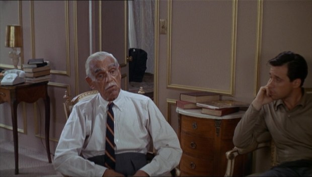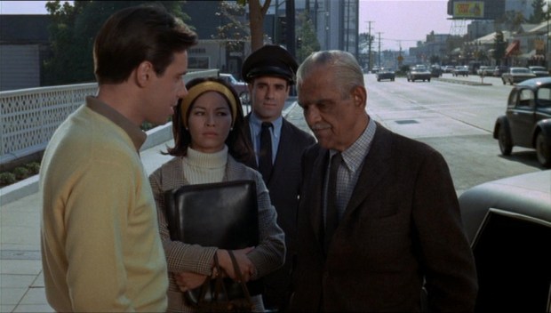 Incluso aunque uno no conociera la personalidad de Bogdanovich, creo que resulta obvio que de las dos historias la que le interesa más al director es la del envejecido Byron Orlok, que es un trasunto bastante obvio del propio Boris Karloff. De hecho el segmento está repleto de guiños cinematográficos que vistos hoy día podrían parecernos incluso demasiado obvios: el apellido Orlok que remite a Nosferatu (1922), un televisor mencionando la emisión de Anatomía de un Asesinato (Anatomy of a Murder, 1959), la aparición en un plano de un libro de Jean Renoir o la escena en que los protagonistas ven por televisión un papel de juventud de Karloff, El Código Criminal (The Criminal Code, 1931) de Howard Hawks. Ninguno de esos detalles tiene nada de malo, pero a veces tengo la impresión de que Bogdanovich se esfuerza demasiado por transmitirnos su cinefilia. No basta con añadir una escena de El Código Criminal, sino que vemos al personaje interpretado por el propio Bogdanovich mandando callar a Orlok para que no le interrumpa y luego habla sobre como ya no se filman películas como antes. No obstante es de justicia reconocer que esta era la primera película de Bogdanovich y que es lógico que, como apasionado cinéfilo que era, estuviera deseando dar muestras de ello a todo el mundo. En obras posteriores conseguiría canalizar esos homenajes cinéfilos de una forma más sutil, más en el tono de sus películas que a través de guiños tan directos.