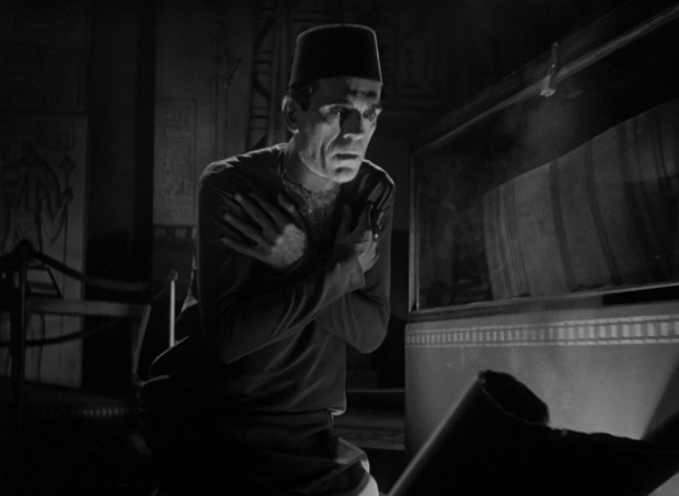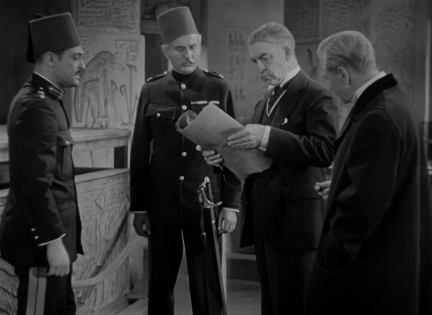 En ese contexto, La Momia (The Mummy, 1932) es un filme que ofrece ni más ni menos los defectos y virtudes que uno espera de este ciclo pero dando como resultado una obra bastante disfrutable, que incluso prefiero a la más canónica Drácula. La trama se inicia cuando en unas excavaciones arqueológicas en Egipto se encuentra la momia de un sacerdote, Imhotep, que vuelve a la vida a raíz de que uno de los arqueólogos lea un conjuro sagrado. Años después Imhotep, ahora caracterizado como un egipcio contemporáneo de aspecto un tanto grotesco llamado Ardeth Bey, facilita a un nuevo grupo de arqueólogos las pistas para encontrar la tumba de una princesa. Los hallazgos son llevados al Museo del Cairo y se suceden una serie de extraños incidentes que involucran a Frank, el hijo del arqueólogo que halló el sarcófago de Imhotep, el Doctor Muller y una mujer que cae bajo el extraño hechizo de Ardeth Bey.