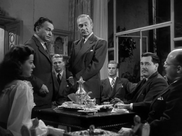 Por otro lado no puedo dejar de aplaudir el trabajo de dirección de John Farrow, al que tenía fichado solo por algunos títulos sueltos, especialmente el magnífico filme de suspense El Reloj Asesino (The Big Clock, 1948). No solo hace un excelente trabajo a nivel de ambientación, con ese tono noir enfatizado por la excelente trabajo de fotografía de John F. Seitz (uno de los más grandes directores de fotografía de Hollywood), sino que también se permite algunas pequeñas proezas con la cámara dignas de destacar. Véase por ejemplo el vistoso travelling que recorre la comisaría de policía que, lejos de ser un alarde de virtuosismo, sirve para transmitir la cotidianedad y diversidad de casos que se dan cita ahí, entre los cuales los supuestos poderes clarividentes de Triton son solo uno más y no necesariamente de los más destacados.