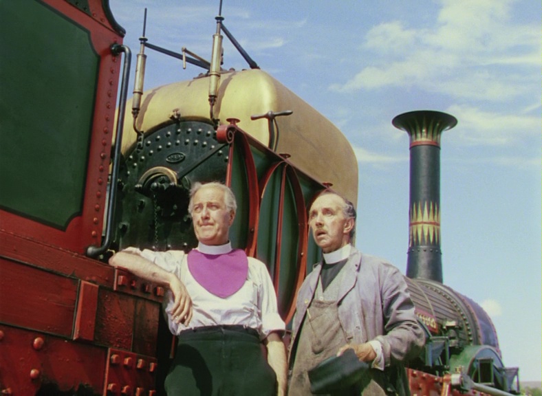 Todo eso es cierto… pero creo que va a su favor. Esa ligereza creo que cuadra perfectamente con el tono de la película, que además va acorde con su duración de apenas hora y veinte. Está claro que la gran idea que hay detrás del filme es explotar esa anécdota, definir una serie de personajes muy divertidos con ese carácter tan típica e irresistiblemente británico y hacernos disfrutar de esos bellos paisajes rurales filmados en Technicolor. A partir de aquí se suceden pequeñas anécdotas divertidas (el fogonero que va cazando piezas de animales en mitad del viaje y parando el tren para recogerlas, el obispo que es tan entusiasta de los trenes como el vicario y se muestra ilusionadísimo por hacer de fogonero…) hasta culminar en la última escena que combina el humor con el suspense: ¿podrán acabar el viaje con el inspector que está revisando la calidad del servicio?