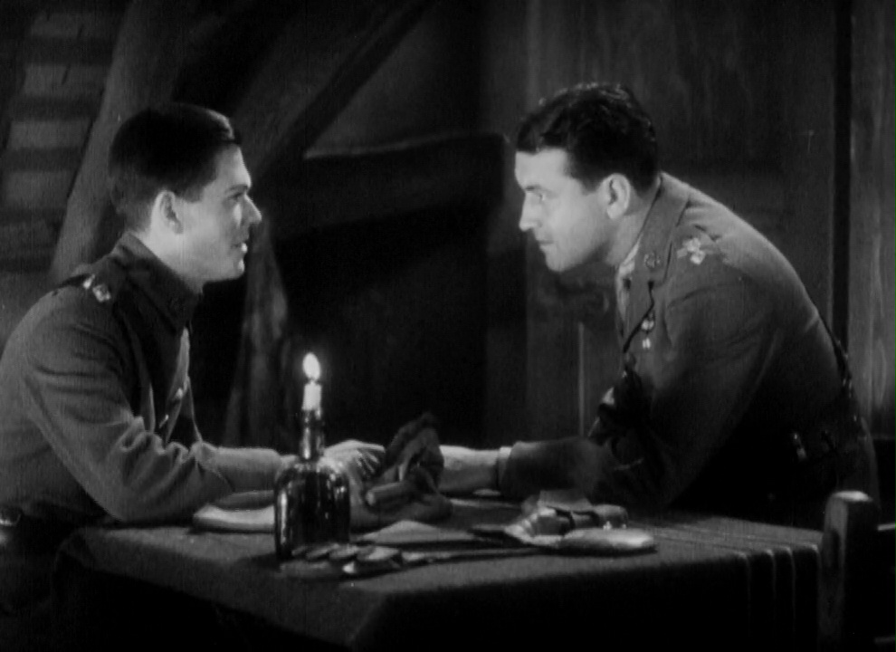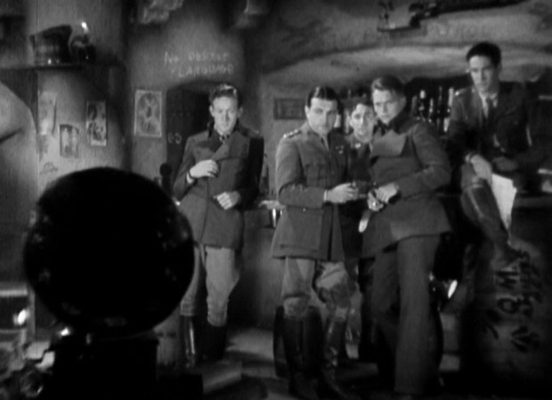 Un aspecto curioso de La Escuadrilla del Amanecer (The Dawn Patrol, 1930) es que si pensarámos en una película de Howard Hawks sobre aviadores durante la Primera Guerra Mundial seguramente nos esperaríamos un filme dinámico y lleno de emoción y suspense, pero no es para nada el caso – del mismo modo que la primera vez que vi El Sargento York (Sergeant York, 1941) del mismo Hawks me llevé un chasco por ser más un filme sobre un dilema moral que una obra bélica pura y dura. Así pues, aunque La Escuadrilla del Amanecer se inicia con unos planos aéreos de los aviadores, pronto sabremos que la función de dichas imágenes es únicamente la de ponernos en situación, y no será hasta pasado el ecuador del metraje cuando tendremos algunas de las tan ansiadas escenas de acción.