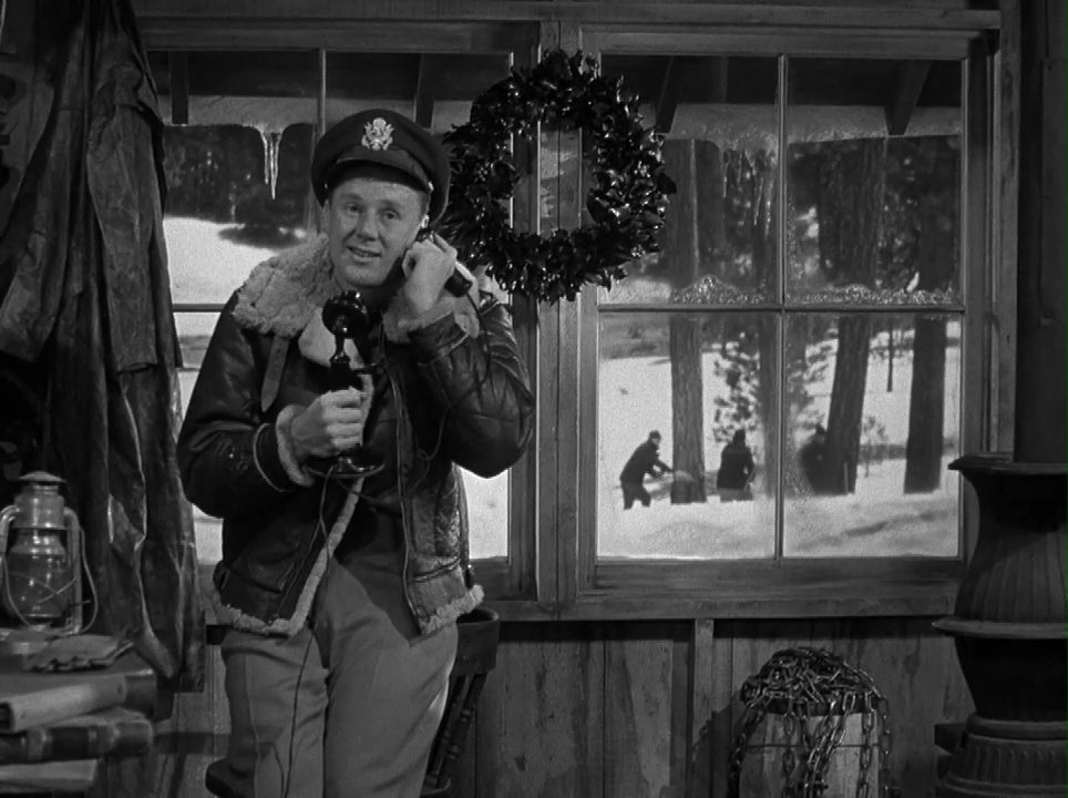 Las escenas que siguen revelan otra faceta del magnífico trabajo de dirección de Mervyn LeRoy, quien aquí nos regala algunos pasajes especialmente evocadores e incluso líricos, tanto de los paisajes por los que se mueven los personajes como de los momentos de calma en que interactúan con sus salvadores. Y es entonces cuando la película nos ofrece un giro para mí al menos inesperado al descubrirse que se le debe amputar una pierna al Capitán Lawson. Lo que era una sospecha que pensábamos que no fructificaría (¡no puede sucederle esto al héroe!) se torna realidad en una tensa escena en que deben operarle con una dosis de anestésico que hará que no sienta nada en las extremidades, pero sí que le mantendrá semiinconsciente. Le siguen algunos planos oníricos en que el maltrecho Lawson recuerda a su bonita esposa, uno de ellos con un detalle muy obvio pero no por ello menos acertado: mientras habla con Ellen por teléfono, de fondo unos leñadores están talando un árbol, igual que le están haciendo a él con su pierna.