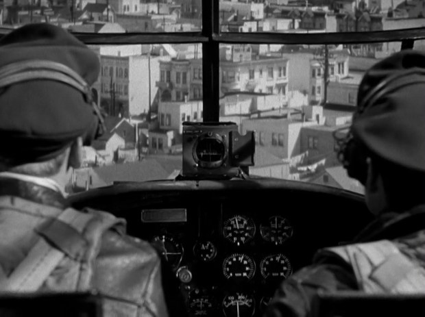Una vez nuestros protagonistas han despegado le sigue la que para mí es una de las escenas que mejor ha sabido reflejar de forma realista el cómo debe ser pilotar un avión bombardero. La irritante musiquilla, que antes estaba en toda la película para no dejar silencios incómodos al espectador y subrayar el tono de las escenas, aquí desaparece y se opta por dejar toda la secuencia solo con sonido ambiente. LeRoy focaliza la acción en el interior del avión más que en planos exteriores que nos lo muestren haciendo el recorrido. La forma como recrea todo el paisaje que se ve a través del aparato, ya que deben volar muy bajo, funciona a la perfección pese a que esté hecho con transparencias. La consecuencia es que logra que nos sintamos como un pasajero más, con todos los nervios y la tensión que eso implica. No parece una clásica escena de Hollywood que desembocará en la típica secuencia de acción, sino que tiene un tono realista que le da una autenticidad que aún hoy día se mantiene intacta.