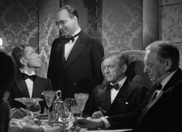 Uno de los aspectos por los cuales Hitchcock es el gran mago del suspense es su asombrosa capacidad para crear escenas que nos retrotraen a esas situaciones de angustia e inquietud más primarias que sentíamos de pequeños, representadas en esa famosa anécdota que tanto le gustaba repetir de cuando su padre hizo que le encerraran en una celda de la comisaría local para darle una lección, traumatizándole de por vida. Ese miedo a que nos pillen por algo que hemos hecho mal. Ese pánico a enfrentarse a situaciones que consideramos peligrosas. Si el tramo final de Encadenados funciona tan bien es porque Hitchcock hace eso pero por partida doble. Por un lado, Alexander Sebastian descubriendo que ha sido engañado, viéndose obligado a confesar a su madre lo sucedido (otra escena con ecos muy arraigados a la infancia: el tener que pedir ayuda a la figura materna y reconocer con amargura que ella tenía razón) y, seguidamente, a planear una forma de acabar con su esposa sin que lo noten sus compañeros nazis. Por otro lado, la sospecha y después el descubrimiento por parte de Alicia de que ha sido descubierta pero no puede escapar de la casa. Nosotros como espectadores estamos de parte de ella, pero no podemos evitar sentir también inquietud cuando el Doctor Anderson comenta en una reunión con otros agentes nazis que está siendo vigilado y uno de los conspiradores, el más astuto, mira severamente a Alexander. El pánico a ser pillado es algo tan universal que ese detalle nos inquieta aun cuando el personaje a punto de ser descubierto es el antagonista del filme.