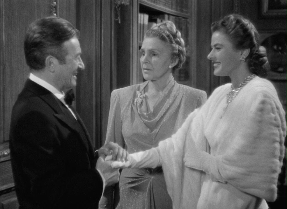 En ningún momento de la película vemos a Alicia y Alexander besándose, confirmando nuestra sospecha de que ésta no debe ser muy cariñosa con él (cosa lógica, puesto que no le quiere). Y para colmo, la mayor muestra de afecto que ella le prodigará en cámara será un abrazo para que Alexander no descubra que le ha robado la llave de la bodega. ¡Pobre Alexander Sebastian! ¿Cómo no vamos a sentir compasión por este hombre genuinamente enamorado de una mujer que sabe fuera de su alcance y que le ha permitido despegarse temporalmente de las faldas de su posesiva madre? Y he aquí un aspecto brillante del guion: está planteado para que estemos de parte de Devlin, el agente americano, pero por su forma de ser realmente es Sebastian el que potencialmente puede provocar más simpatías al espectador. ¿No nos es en el fondo un personaje con el que empatizamos más fácilmente que con ese frío agente norteamericano?