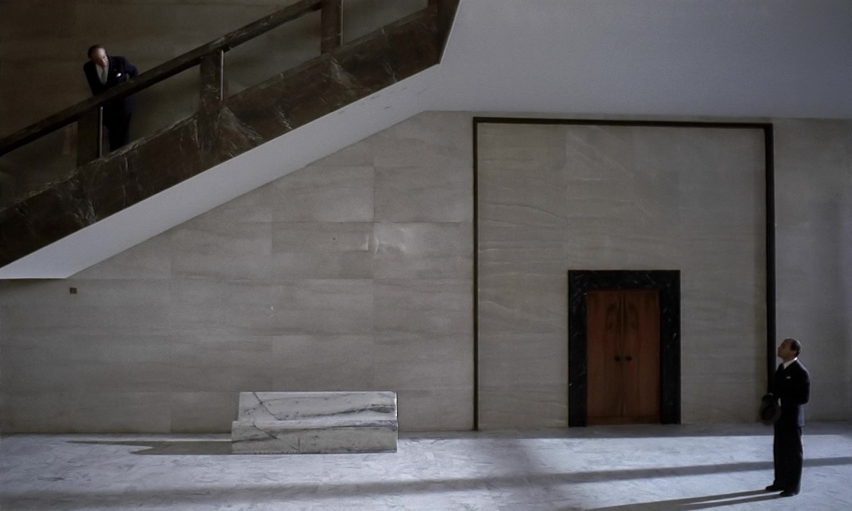 Esto se aprecia especialmente en la forma como Bertolucci explota ese tipo de arquitectura grandilocuente tan del gusto de los regímenes fascistas como el de Mussolini, que es captado siempre con un cierto punto de extrañeza: las oficinas a las que acude Marcello con esas estatuas de corte clásico siendo trasladadas, los exteriores filmados en un distrito de Roma de arquitectura brutalista creado por Mussolini como su modelo ideal de ciudad fascista o la arquitectura del manicomio en que se encuentra el padre de Marcello, que no tiene nada que ver con la imagen que nos habríamos formado nosotros de un sanatorio mental.