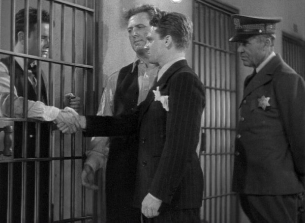 Curiosamente el personaje de Mileaway, su ayudante, lo interpreta un actor de teatro en el que era su segundo papel en el cine llamado James Cagney. Sí, el mismo Cagney que solo un año después se convertiría en uno de los gangsters de la gran pantalla por excelencia en El Enemigo Público. Resulta inevitable pues hacer las comparaciones y notar cómo Cagney habría sido mucho mejor en ese rol. Fíjense en la escena inicial en que Ayres intimida a todos los jefes del hampa lanzándoles amenazas si no siguen sus órdenes. Las frases son las correctas, las que uno esperaría de un personaje así… pero suenan fuera de lugar en la boca de alguien con el aspecto de Lew Ayres. En cambio, más adelante Mileaway repite unas amenazas similares y, milagro, esta vez sí suenan realmente amenazadoras. Basta con ver cómo escupe Cagney las palabras y las miradas que lanza a los otros gangsters para que entendamos por que éstos se sienten intimidados. No es solo que Cagney sea mejor actor que Ayres, sino que tiene la fuerza que requiere dicho papel.