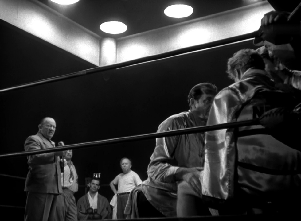 Fijémonos en el inicio, en que Wise nos sumerge ya en el ambiente pugilístico y callejero a través de las disputas de vendedores de periódicos en la puerta y algunos espectadores haciendo cola. Un comentario suelto nos dan una primera pista del que será nuestro protagonista, Stoker, sobre el que se hace una broma a costa de su avanzada edad para el boxeo. Entra en escena un personaje crucial del drama, ¿y qué es lo primero que hace? Encender una cerilla rasgando la parte del cartel del combate en que aparece el nombre de Stoker. Acto seguido sabemos que es su manager. ¿Qué mejor forma de dar a entender sutilmente el trato que le va a dispensar al boxeador?