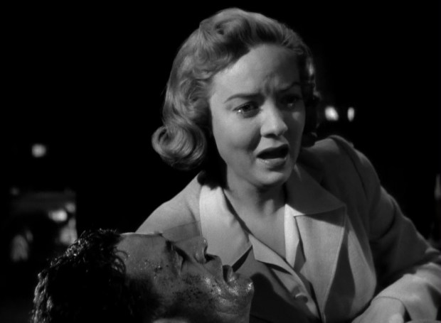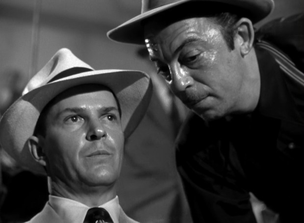 Como comentaba al principio, me encanta la forma como se resuelven las grandes películas de serie B de esta época: esa absoluta concreción narrativa, la manera tan limpia y directa al grano de ir desarrollando la historia, esa necesidad de aprovechar bien cada detalle para ir suministrando información al espectador… pero al mismo tiempo sin saturarlo ni sobrecargar las escenas. Hay además una especie de modestia, típica de buena parte del cine americano clásico, que resulta hoy día más refrescante que nunca: el comprobar que no se hacen alardes innecesarios, que el director no busca sobresalir… pero a cambio cuando se hace necesario te deja boquiabierto con alguna decisión de puesta en escena llamativa, que además viene justificada por necesidades del guion.
