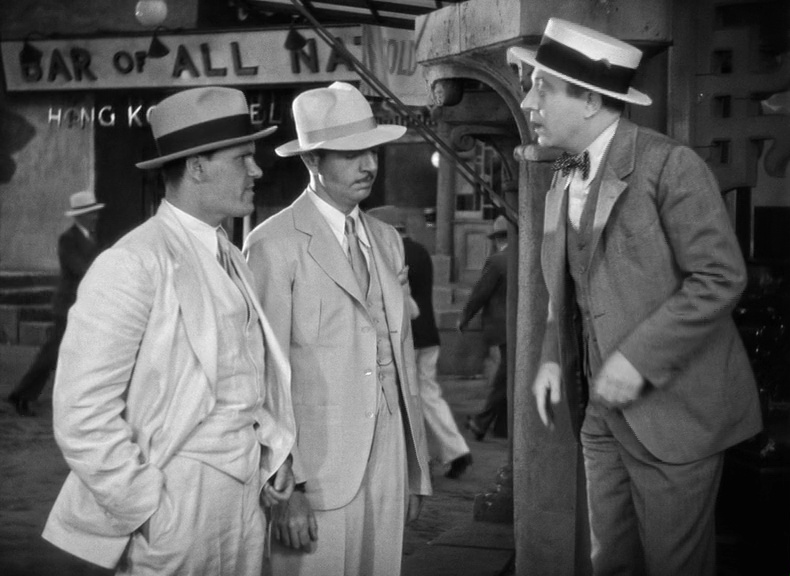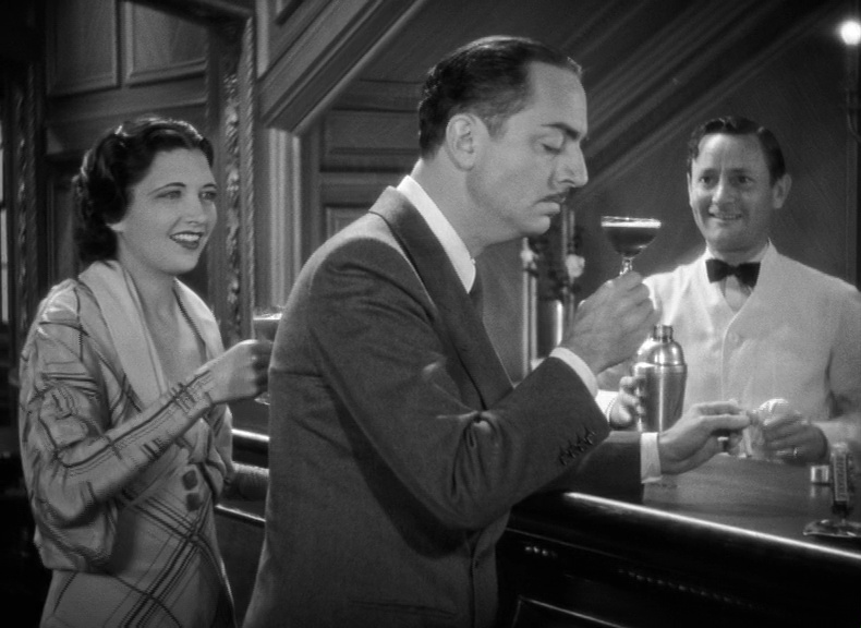 Fíjense sin ir más lejos en ese inicio tan maravilloso que engancha al momento. Un primer travelling a través de de una taberna deteniéndose en varios detalles (el cigarro encendido sobre unas teclas sucias del piano) y ese extraño trío de cantantes recogiendo monedas que les tiran (el detalle de una que cae en una escupidera y no saben si cogerla). Luego otro travelling siguiendo a todos los clientes en la barra del bar, un barman soltando un rollo a un cliente a quien no vemos sobre el cóctel que está preparando, un brazo que toma el cóctel. Se realiza un corte y vemos por primera vez al cliente en cuestión (que es ni más ni menos que William Powell) yendo a beberse el combinado, pero justo se choca con la mujer detrás de él (Kay Francis). En literalmente un segundo se nos ha mostrado a los dos protagonistas y la circunstancia casual que los lleva a encontrarse. En solo unos minutos Garnett ha descrito el ambiente, ha incluido pequeños detalles que le dan más colorido y algo de humor, ha creado cierto misterio (¿quién es ese interlocutor al que el barman no para de hablar y cuyo rostro se nos niega?) y ha iniciado repentinamente el drama antes de que nos demos cuenta. Todo ello de forma natural.