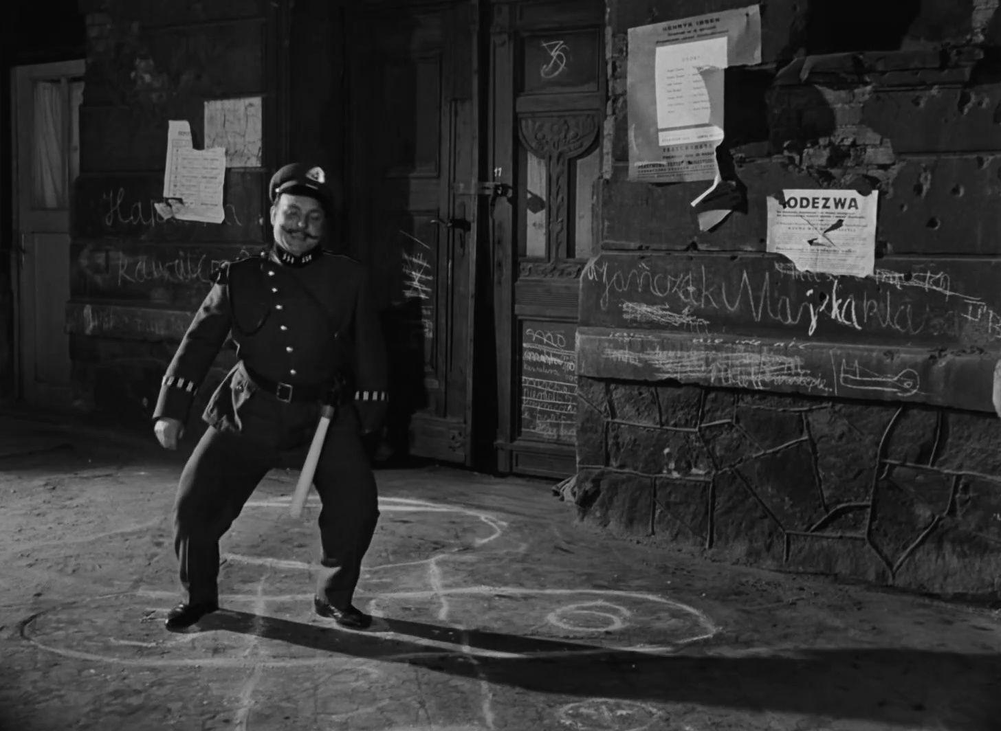 En el mismo año en que las telespectadores polacos disfrutaban de este humor tan poco convencional, el director Tadeusz Chmielewski debutaba con una película coescrita precisamente por Jeremi Przybora del dúo de los viejos caballeros. Y si bien esta obra no tiraba tanto hacia lo absurdo, tenía algunos detalles que estaban en sintonía con esta nueva corriente humorística. Eso queda patente en el prólogo, en que varios delincuentes se aporrean y atacan entre si para hacerse con una misteriosa carpeta. Finalmente uno de ellos la consigue, saca un libro de ella y sonríe cándidamente al mirar su contenido, que son los créditos iniciales de la película. Seguidamente se muestra una ciudad invadida por ladrones pero todo ello relatado en un tono humorístico e inocente: una voz en off canta una canción sobre todos los crímenes que se cometen y vemos una serie de robos reflejados en forma de estampas humorísticas. Todo tiene un tono expresamente surrealista e incluso infantil (un agente de la ley detiene a dos ladrones tocando una flauta como el flautista de Hamelin), que en realidad luego desaparecerá por otro tipo de humor. Pero aun así estos minutos son un reflejo muy claro de la influencia de ese nuevo tipo de comedia que estaba apareciendo en la misma época por la televisión polaca.