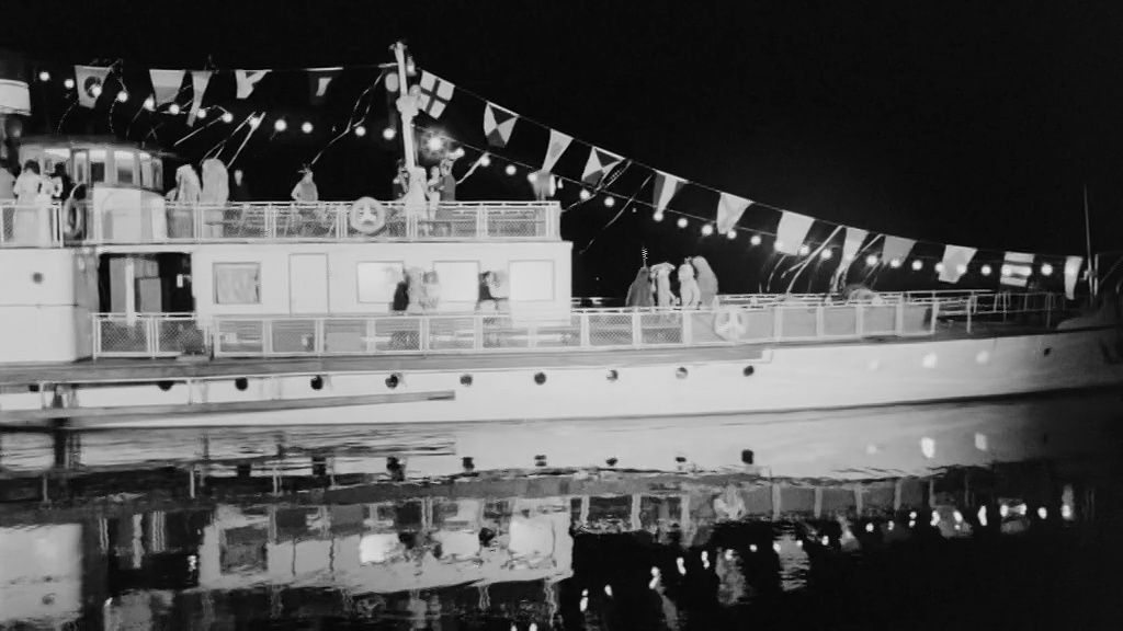 Pero lo que más cambió fue el desenlace. Originalmente, los pasajeros organizaban un enorme baile de disfraces, durante el cual uno de los personajes principales no quiere ponerse una máscara de cerdo «porque todos me reconocerán con ella«. Sin embargo, el barco encalla y los pasajeros del crucero se ven obligados a abandonarlo. Una procesión de personas disfrazadas deambula por la zona y se encuentra con todo tipo de personajes: borrachos, policías, mujeres fuera de la iglesia. Luego los pasajeros del crucero regresan al barco y realizan una actuación preparada para el capitán. Durante la escena culminante (una gran pirámide de cuerpos de pasajeros) sucedía un accidente y el capitán moría.