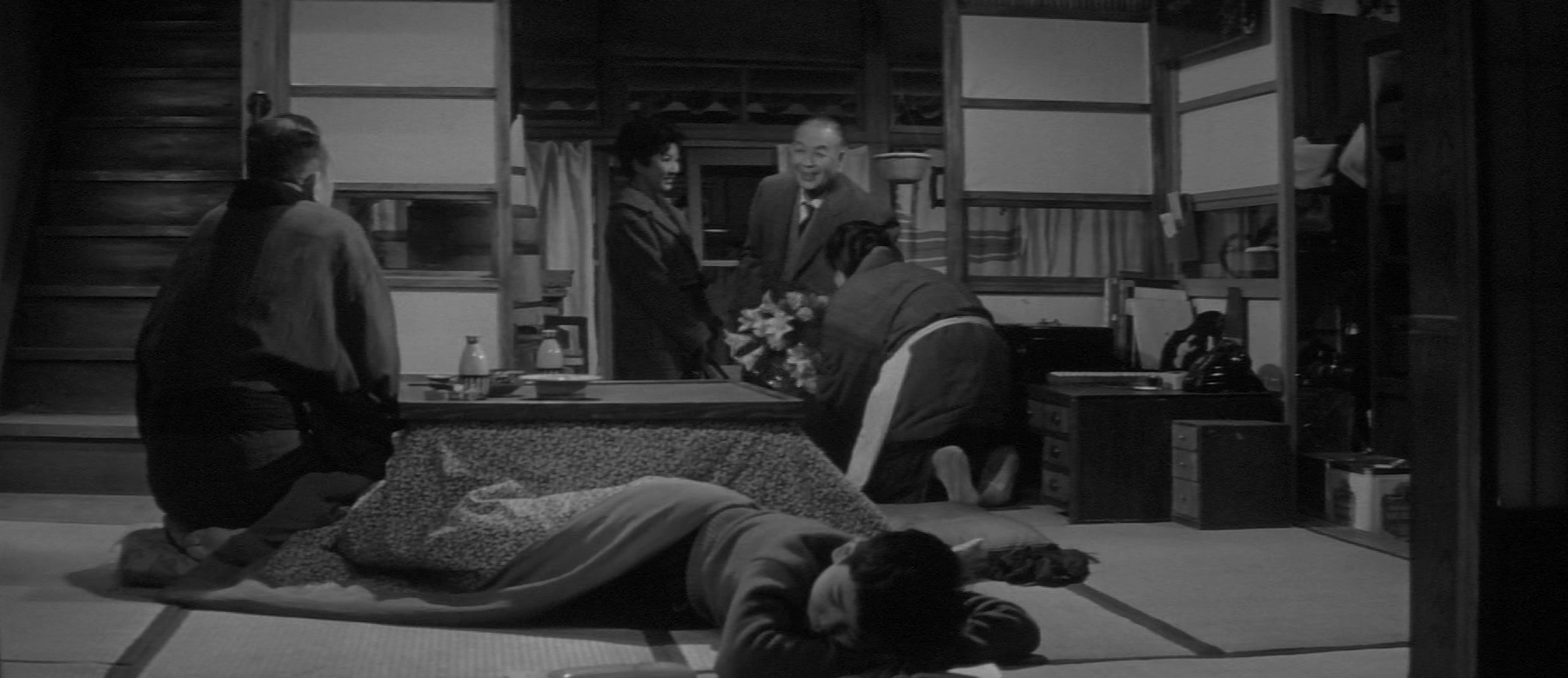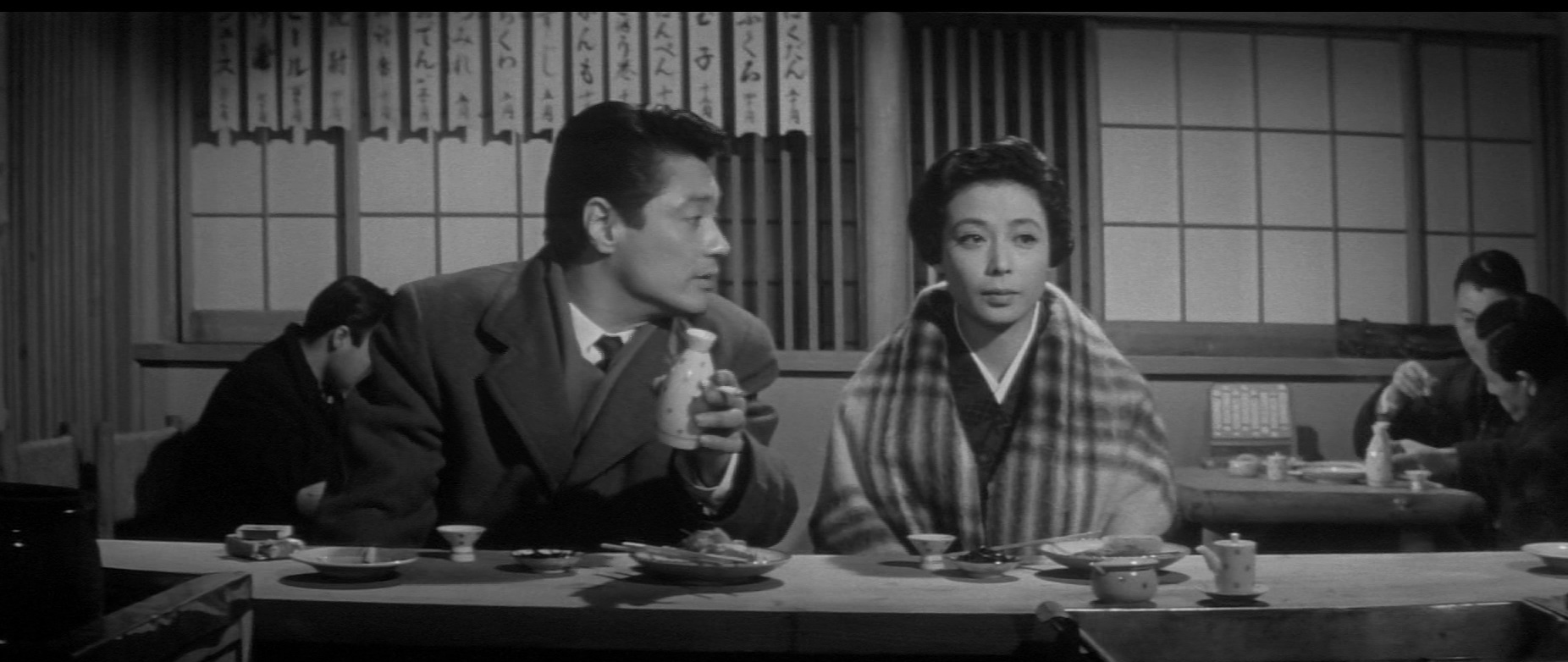 Imagen de una Madre tiene entre sus muchas cualidades el ser el único filme que Shimizu filmó en formato panorámico. De hecho, me da la impresión de tener un acabado bastante más formal a nivel técnico en comparación con sus otras obras, que a nivel visual parecen (falsamente) descuidadas dando más una sensación de espontaneidad, como si todo el peso recayera en captar a los actores. De hecho si Shimizu siempre fue muy aficionado a mover la cámara, aquí esos movimientos se convierten en travellings laterales que se mueven por las distintas estancias de las casas, que funcionan muy bien (y entiendo que era su forma de jugar con el panorámico) pero son bastante diferentes a sus travellings de antaño, que no seguían un patrón tan rígido.