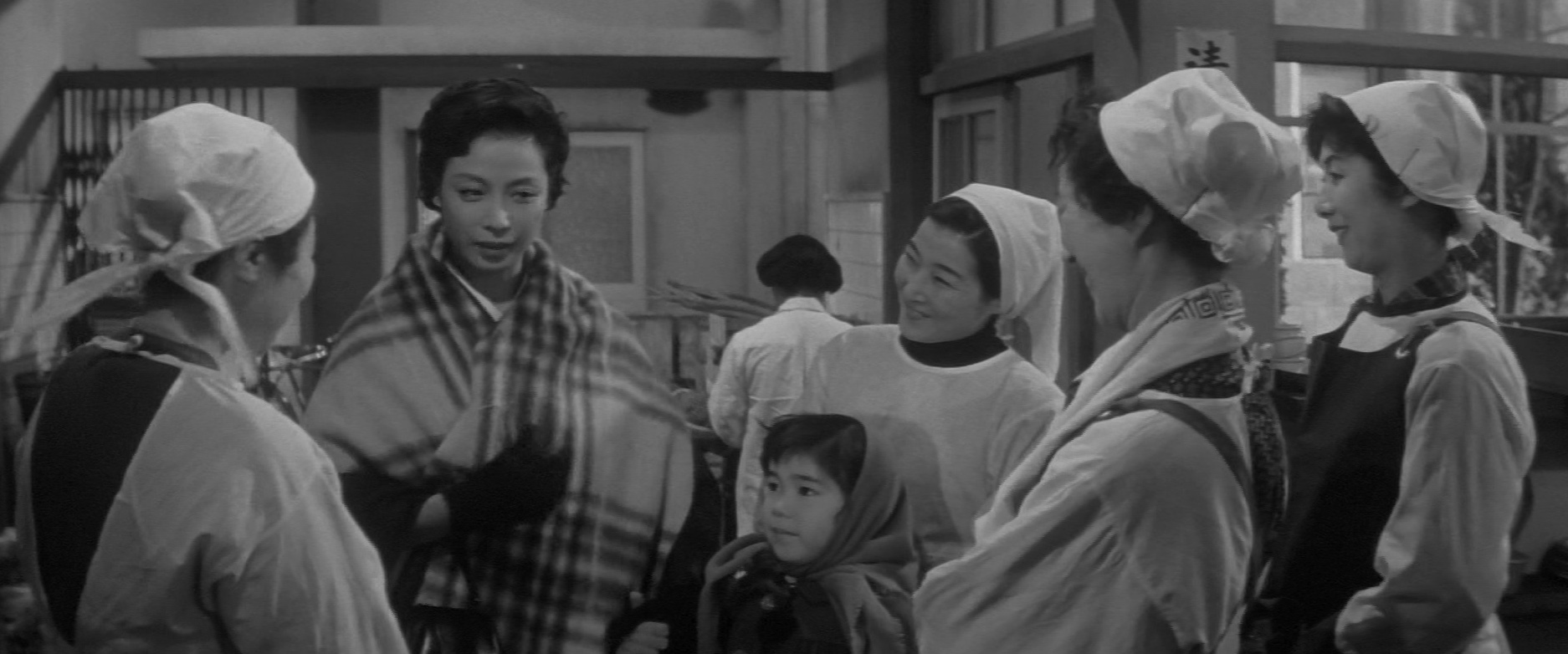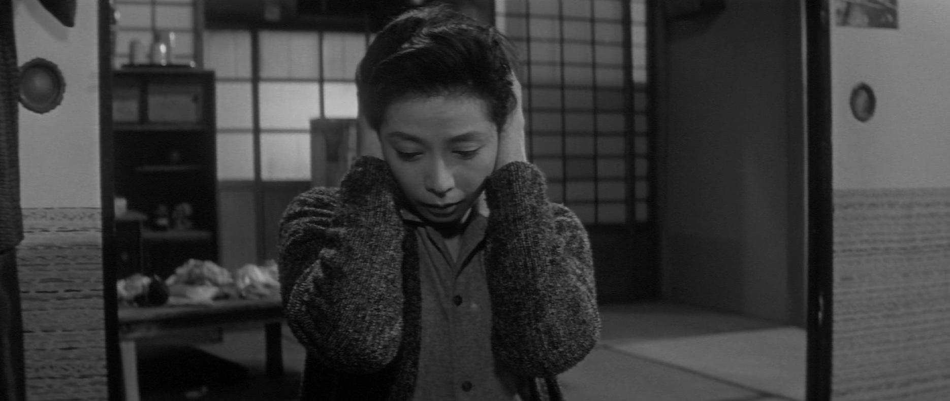 Y aquí es donde juegan un papel fundamental los dos actores en cuestión. Por un lado la excepcional Chikage Awashima, una de las grandes actrices del cine japonés clásico, que desprende ternura, comprensión y sufrimiento, pero sin parecer un estereotipo de mujer abnegada, sino más bien una buena mujer superada por la situación. Y por otro lado el chico que encarna al protagonista que hace una interpretación increíble y me sirve para corroborar, una vez más, un hecho que yo creo que no admite discusión, y es que Shimizu fue el mejor director de niños que ha dado la historia del cine. Soy incapaz de entender cómo podía extraer interpretaciones tan naturales y tan exentas de maniqueísmos de niños que en muchos casos ni siquiera eran actores infantiles. Y que en su última película volviera a lograrlo con los personajes de Michio y su hermanastra Emiko es un tributo a su talento.