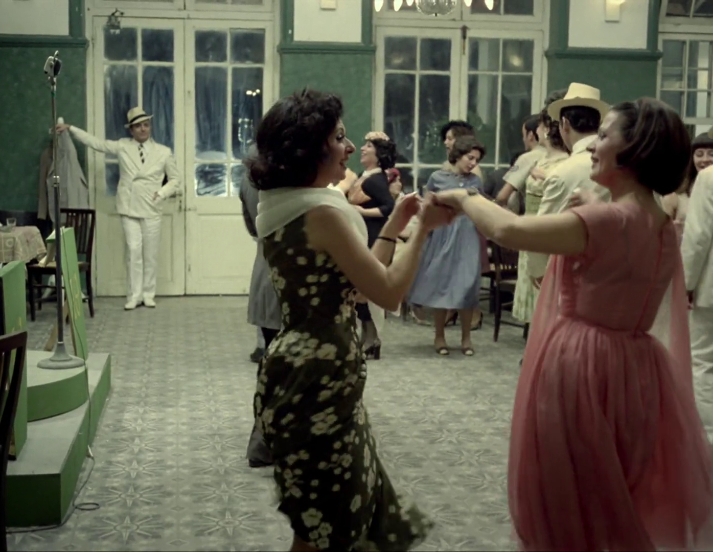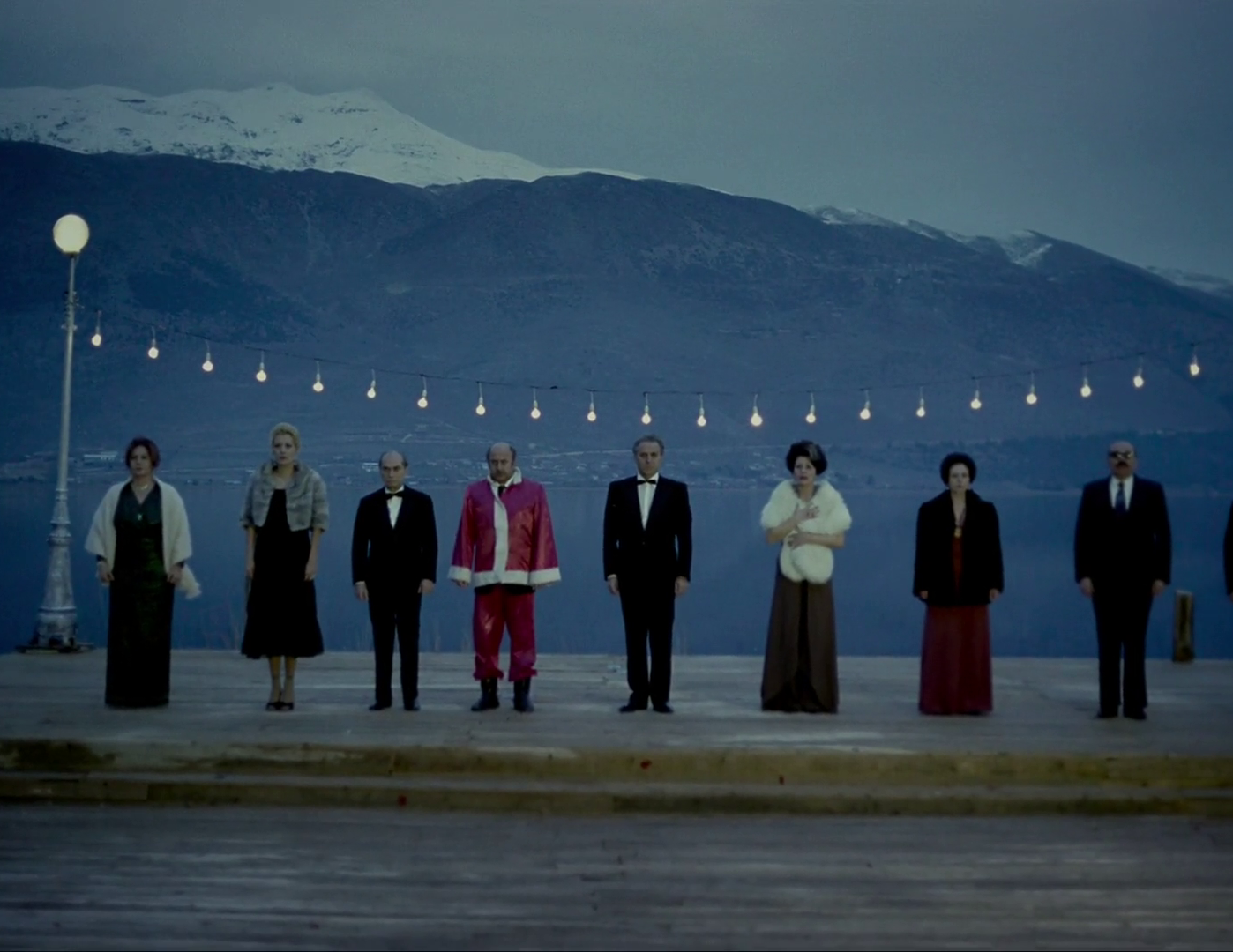 Pero sería absurdo no reconocer que, si bien el uso de estos planos secuencia tiene claramente una intención fundamentada en la gestión del tiempo, también generan una fascinación especial por lo que tienen de coreográfico: ver cómo los actores y la cámara se van moviendo de forma coordinada, dejarse sorprender por cómo los espacios van cambiando e imaginarse a nivel de rodaje lo que debió implicar ir alterándolos en mitad de la toma sin que se notara. Puede parecer un nivel muy esencial, como el del joven cinéfilo que lo primero que remarca en Kubrick es la perfección de sus encuadres sin ver todo lo que hay a su alrededor, pero realmente creo que Angelopoulos juega a propósito con esa idea de coreografía con la cámara.