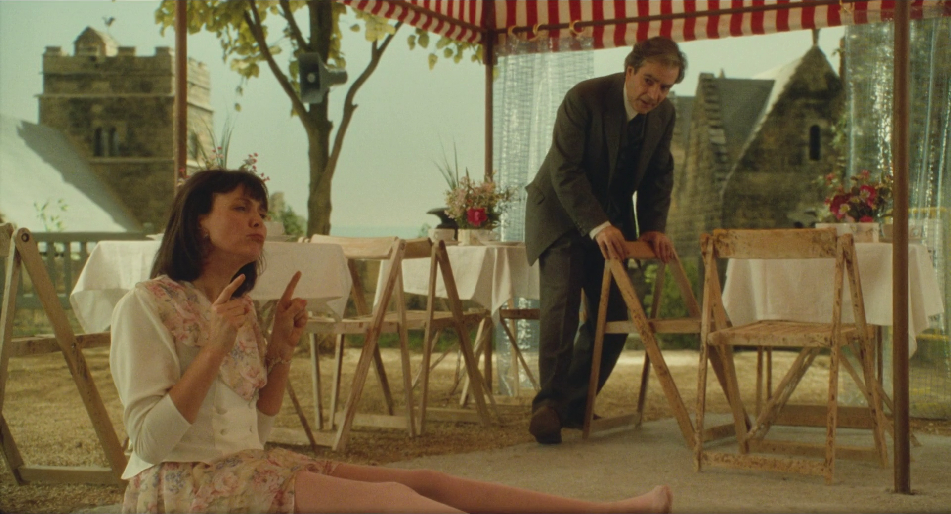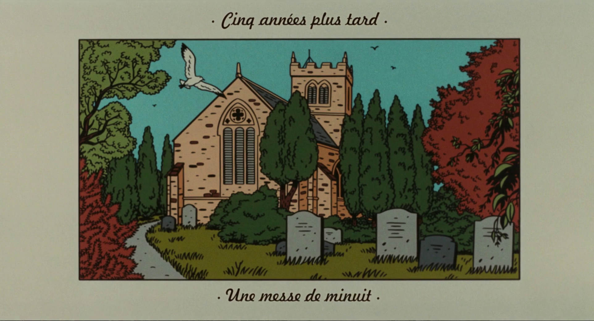 Para darle una cierta coherencia interna a una obra que parece correr el riesgo de irse por las ramas en cualquier momento (¿hasta qué punto debemos seguir el desenlace de cada variación?), el guion opta por no huir de su origen teatral y limitar la mayor parte de escenas a unos espacios muy concretos, incluso siguiendo una serie de «rimas», es decir, empezar siempre en el jardín de los Teasdale y acabar en la iglesia del colegio, ya sea con motivo de un funeral o una celebración cualquiera, dependiendo del caso. Además, para darle una apariencia uniforme, Resnais se sirve de unos diseños gráficos del dibujante de cómics Jean-Claude Floch, que muestran a los diferentes personajes y también sirven como viñetas para ir tirando hacia atrás en cierto momento. Este recurso y la puesta en escena que opta por darle un tono expresamente irreal a muchos de esos entornos me hace pensar que muy probablemente Wes Anderson debe conocer la película o, si no es el caso, alguien debería recomendársela urgentemente.