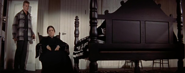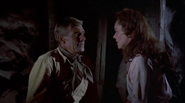 Si antes decía que El Rastro de la Pantera es una película extraña es en primer lugar porque uno no sabe bien dónde encuadrarla: la amenaza exterior de la pantera enseguida se revela como un McGuffin y aleja el filme del género de aventuras, de modo que a medida que avanza la trama tenemos más la sensación de estar ante un asfixiante drama de personajes ambientado en la América de principios de siglo XX que ante un western. Pero ésa no es su única peculiaridad, porque ni siquiera los conflictos entre personajes siguen el cauce que uno esperaría con el previsible enfrentamiento entre Curt y Harold. A efectos prácticos Curt, el que parecía el personaje principal y que de hecho lo encarna la gran estrella de la película (un Robert Mitchum previsiblemente cómodo en un personaje cínico y sarcástico) acaba estando ausente durante la mayor parte del relato, y da la impresión de que si Wellman quiso emplear un actor tan potente y carismático como él para encarnar a Curt no es para que llevara adelante la película sino para que su breve presencia en la casa consiguiera dejar suficiente huella al espectador; que en los pocos diálogos que comparte con el resto de personajes ya seamos capaces de entender su personalidad y la influencia que tiene en los demás. Y a veces la forma de demostrar ser un gran actor estriba en conseguir dejar huella en unos breves minutos.