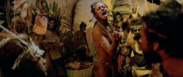 En general me resultan muy interesantes aquellos films de cineastas con un estilo claramente reconocible en que éstos llevan sus características al extremo, hasta las últimas consecuencias, a veces incluso hasta la abstracción, como por ejemplo Playtime (1967) de Jacques Tati, Inland Empire (2006) de David Lynch o el caso que nos ocupa. Inspirado por el asesinato del cineasta Pier Paolo Pasolini, Rocha planteó La Edad de la Tierra como una obra experimental en que lo más parecido que tenemos a una narración es la llegada de cuatro Jesucristos a Brasil (uno indio, otro negro, otro militar y otro revolucionario) para detener al capitalista americano Brahms. Pero realmente esto es lo de menos, porque la película en realidad es un collage de diferentes escenas que se suceden sin ningún orden aparente ni ningún hilo conductor a lo largo de sus casi tres horas de duración. Lo cual no tiene por qué ser malo, de hecho ese estilo tan disperso y caótico es muy característico de Rocha y ya se manifestaba en obras suyas tan interesantes como la política Tierra en Trance (1967) o El Dragón de la Maldad contra el Santo Guerrero (1969), la secuela de su mejor obra, Dios y Diablo en la Tierra del Sol (1964). Y de hecho tiene sentido que la última entrega de su carrera fuera la película más excesiva que jamás hizo, pero en mi opinión La Edad de la Tierra es un film que nunca llega a funcionar.