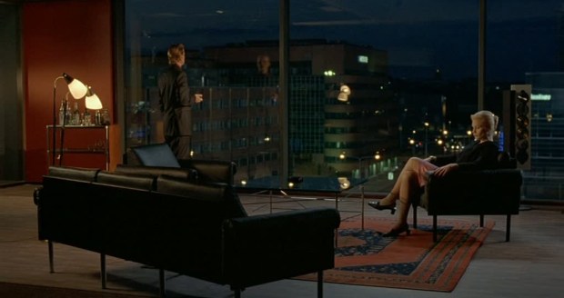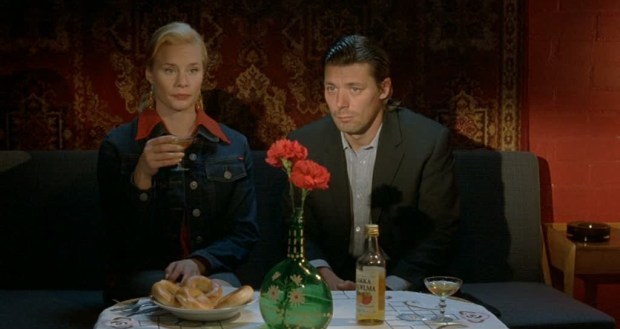 El otro gran rasgo que salta a la vista tanto aquí como en el cine de Kaurismäki en general es la marcada ausencia de diálogos, lo cual contribuye a acentuar ese clima tan frío y tenso que impregna el film – esta faceta suya la llevaría al extremo años más tarde en Juha (1999), película que tuvo la arriesgada decisión de rodar como un film mudo de los años 20. Hasta bien avanzado el metraje no escuchamos las primeras palabras, pero por otro lado no se hacen necesarias porque Kaurismäki es un maestro de lo visual, un experto en narrar hechos con imágenes, algo por lo que reconozco que siento debilidad. Por ello, la gran mayoría de situaciones cruciales del film se explican visualmente: la relación de Iiris con el resto de su familia (que no le aporta ya nada y que le recriminan que tenga un pequeño capricho comprándose un vestido), su encuentro y relación con un hombre al que toma erróneamente por un pretendiente, etc.