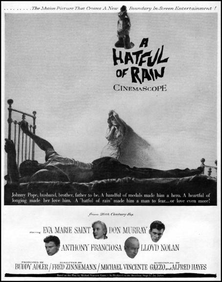 Si bien es cierto que la gran película de Hollywood que se atrevió a tratar abiertamente sobre la drogadicción desde la implantación del Código Hays de censura es El Hombre del Brazo de Oro (1955) de Otto Preminger, un servidor se decanta antes por otro filme que comparte temática y se estrenó solo dos años después: Un Sombrero Lleno de Lluvia (1957).