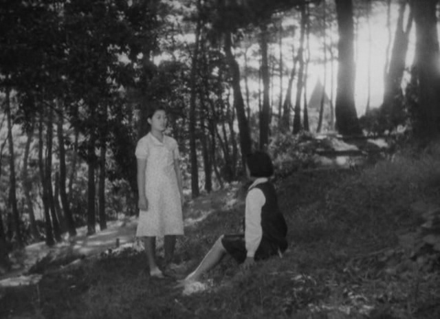 A cambio algo que sí le reprocho al filme es que la escena final que tiene lugar delante de la susodicha torre de introspección es demasiado solemne y larga, lo cual me rompe por completo con el tono más cotidiano y ligero del cine de Shimizu. En ella vemos a algunos de los protagonistas en una ceremonia previa a su marcha del centro con discursos algo pomposos resaltando los valores que han aprendido en la escuela. Eso nos lleva a otro elemento que quizá podría verse como algo problemático si ponemos la película en contexto: ¿ese énfasis en el sacrificio personal por el bien colectivo y la insistencia en educar a los niños bajo una disciplina no son sospechosamente cercanos a la ideología que propugnaba un gobierno japonés fuertemente militarizado y enzarzado en guerras con otros países?