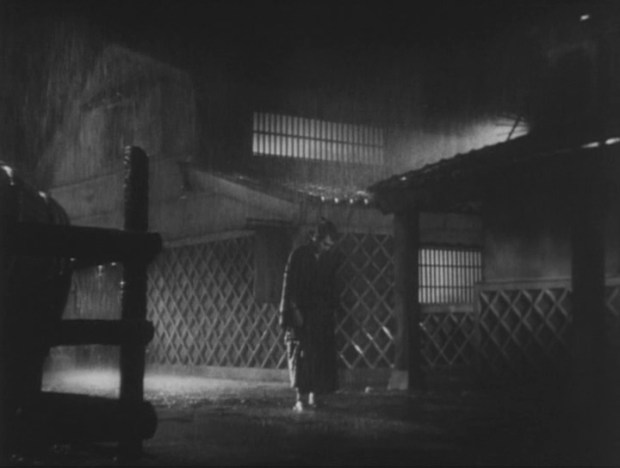 Pero una vez dos de ellos llegan a la cabaña con el anciano, la joven y el alpinista, el tono del film cambia y se hace patente la gran distancia que hay entre los dos atracadores: el anciano, que en el fondo tiene buen corazón, y el más joven, egoísta y lleno de rabia. Aquí es donde le veo una de las grandes flaquezas del guión, y es que el atracador anciano, encarnado por Takashi Shimura, parece demasiado dócil para ser un criminal. ¿Cómo podía un hombre así ser el jefe de una banda de atracadores? A cambio la conmovedora interpretación de Shimura compensa esa flaqueza de guión, ofreciéndonos uno de los momentos más emotivos de la película cuando escucha una grabación de «My Old Kentucky» mientras mira melancólico el suelo.