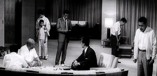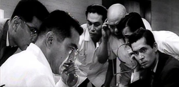Por otro lado encontramos también un contraste entre el cielo y el infierno a lo largo del film que se indica tanto en la versión española del título como en el título original (que vendría a significar aproximadamente «Arriba y abajo«). El secuestrador en una de sus llamadas hace una referencia bastante explícita cuando se queja del insoportable calor que está padeciendo desde donde vive en contraste con la casa de Gondo que está acomodada con aire acondicionado. También uno de los policías menciona en cierta ocasión que esa casa, situada en una colina a lo alto de la ciudad, realmente parece que les esté mirando por encima del hombro. Pero tampoco creo que Kurosawa pretenda, como se ha dicho muchas veces, contraponer el bien contra el mal representado en las figuras de Gondo y el secuestrador que se encuentran cara a cara en la inolvidable y tensa escena final. Simplemente lo veo como una contraposición de dos mundos, un intento por parte del secuestrador de acceder a ese mundo superior, a ese cielo, o más bien, de acercar ese mundo al suyo, al de los bajos fondos.