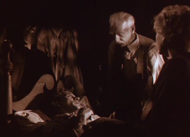 El Hombre Que Vendió Su Alma es una de las obras que más me ha sorprendido del Hollywood clásico, ya que por estilo parece casi más germana que americana. Y no lo digo por la nacionalidad del director, sino por ese estilo tan surreal y onírico, lleno de metáforas e instantes que rompen con la armonía de una narración clásica hollywoodiense. Es cierto que el material de base da mucho juego para todo ello, pero la forma como Dieterle lo explota denota claramente sus orígenes en la industria cinematográfica alemana de los años 20. Todo el film tiene ese halo romántico y tenebroso en su puesta en escena, muy ayudado por la excelente fotografía de Joseph H. August (que colaboró de nuevo con Dieterle en Jennie). Además se trata de una obra maravillosamente visual, hasta el punto de que a veces parece casi una película muda por la forma tan expresiva de tratar las imágenes. Hay por ejemplo algunos primeros planos que están insertados de una forma que tiene más que ver con el cine mudo que con el sonoro (por ejemplo el rostro de la madre mirando gravemente en ciertas escenas), por no hablar de algunos trucos de montaje muy inusuales que parecen demasiado bruscos en el contexto de un film de Hollywood.